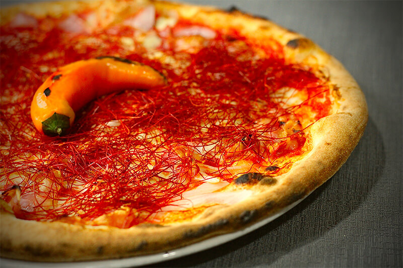 Pomodoro, Mozzarella, Prosciutto Cotto, Wurstel, Salame, Funghi, Carciofi, Salsiccia e ‘nduja